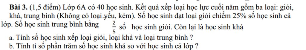 Tỉ số phần trăm số học sinh khá so với học sinh cả lớp là `:`