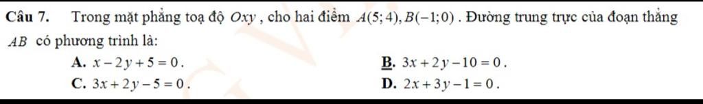 `+)` Ta có: `\vec{AB}= (-6; -4)` là vectơ chỉ phương của đoạn thẳng `AB`