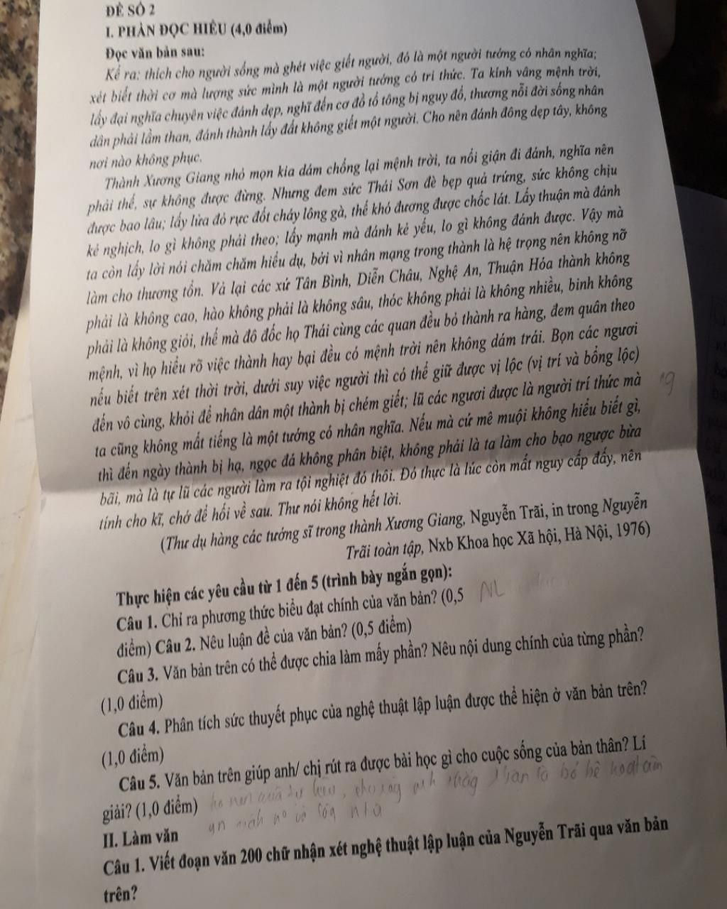 I PHẦN ĐỌC HIỂU (4,0 điểm)