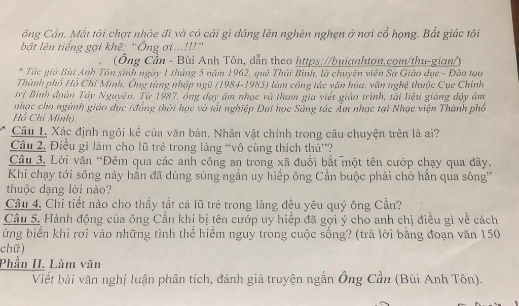 ông Cần. Mắt tôi chợt nhòe đi và có cái gì dâng lên nghèn nghẹn ở nơi cổ họng. Bất giác tôi