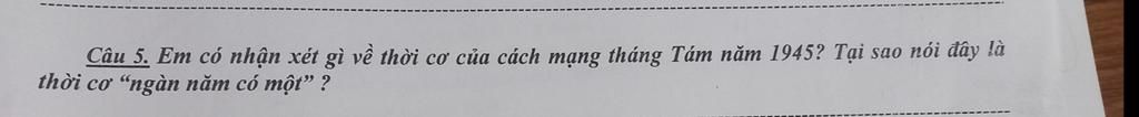 *Cách mạng tháng Tám năm 1945 là thời cơ " ngàn năm có một " vì: