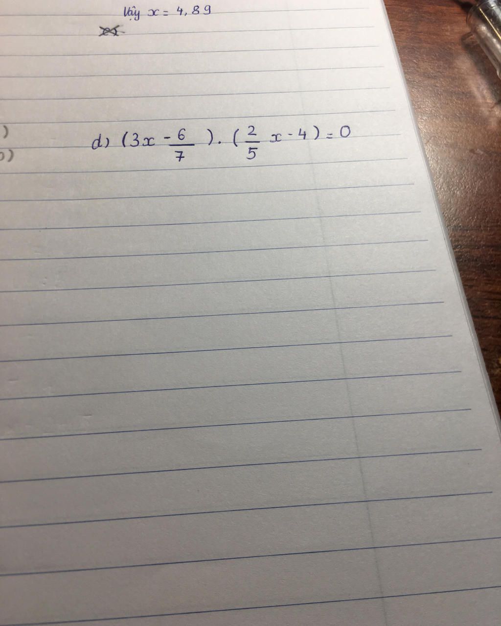 $d)$ $\left(3x - \dfrac{6}{7}\right) . \left(\dfrac{2}{5}x -4\right) = 0$
