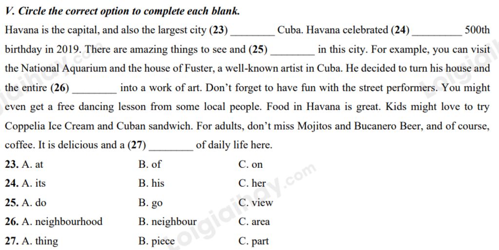 `-` Giải thích: "Neighbourhood" là khu dân cư đg ám chỉ một khu vực hay cộng đồng nhỏ trong một thành phố cụ thể ở đây là Havana