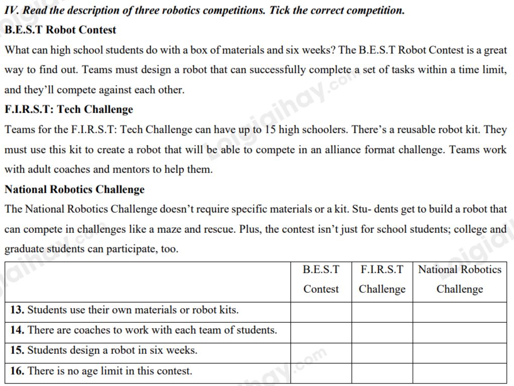 Thông tin: The National Robotics Challenge doesn’t require specific materials or a kit.