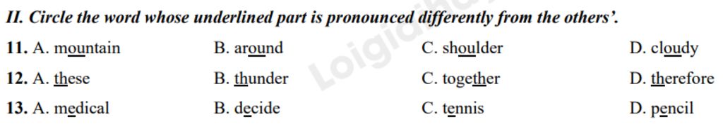 `-` Câu `B` âm /θ/, còn lại âm /ð/.