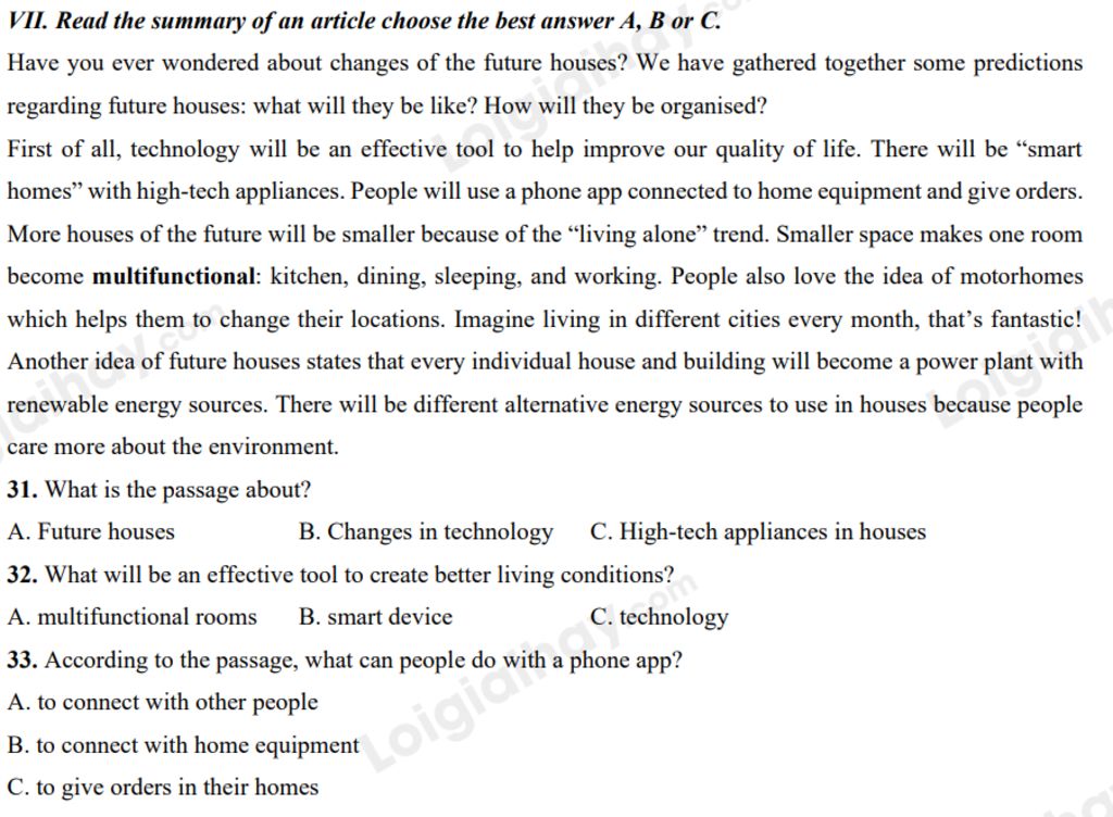 Thông tin: There will be different alternative energy sources to use in houses because people care more about the environment.