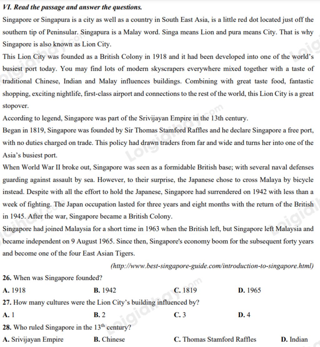 Thông tin: This Lion City was founded as a British Colony in 1918