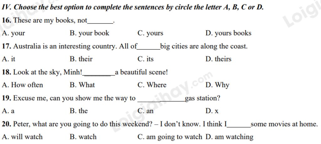 `-` Sau đại từ sở hữu không có danh từ.