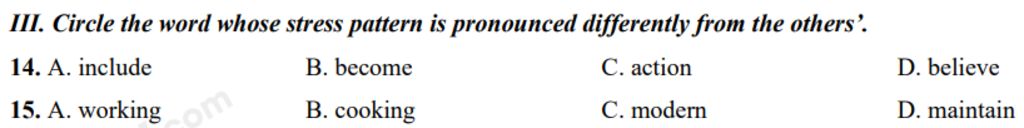 `14.bbC` Nhấn trọng âm `1`, còn lại nhấn trọng âm `2`$\\$`15.bbD` Nhấn trọng âm `2`, còn lại nhấn trọng âm `1`