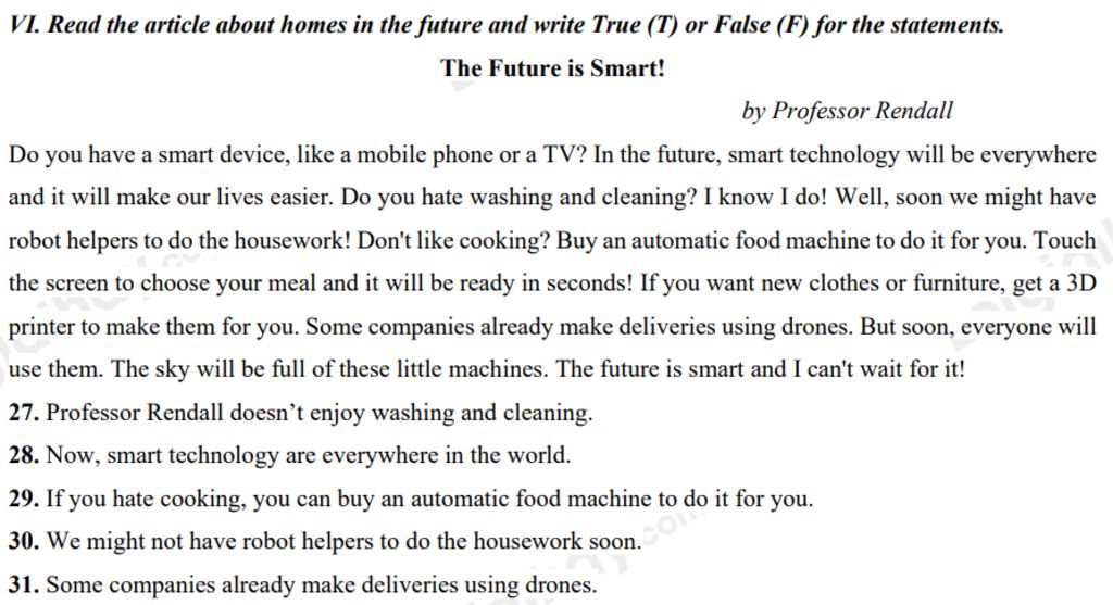 `=>` Dẫn chứng: In the future, smart technology will be everywhere and it will make our lives easier.