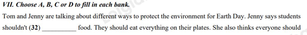 `-` Jenny nói rằng học sinh không nên lãng phí thức ăn, tức là không nên "vứt đi" (throw away)
