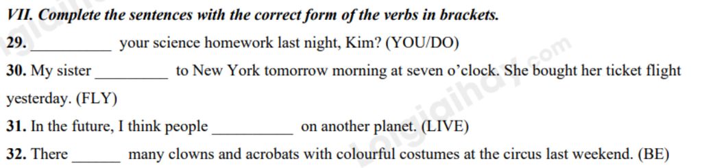 `-` TLTD, dấu hiệu: tomorrow morning at seven o’clock (thời gian cụ thể ở tương lai)