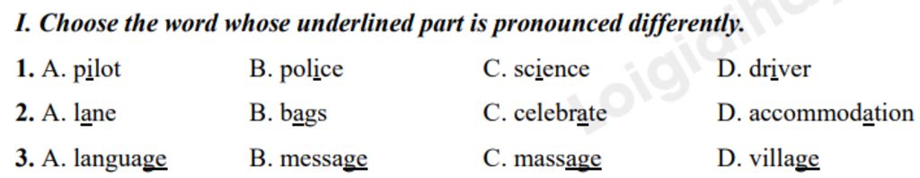 `3.C` phát âm /ʒ/, còn lại phát âm /dʒ/