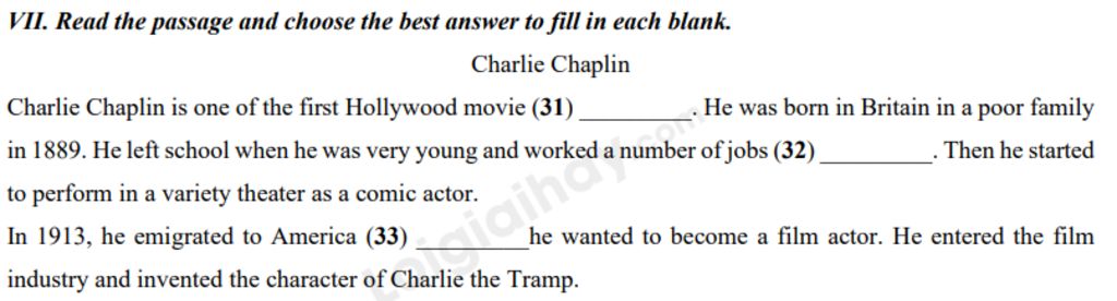 `-` Charlie Chaplin: diễn viên hài `->` chỉ người