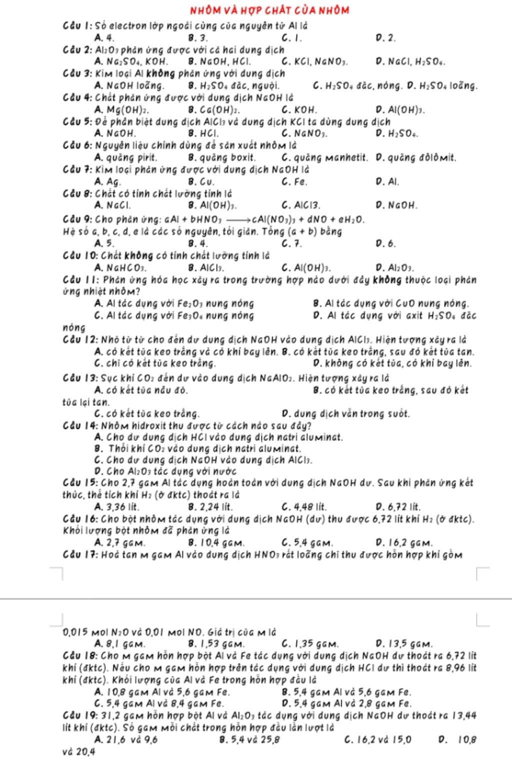 NHÔM VÀ HỢP CHẤT CỦA NHÔM