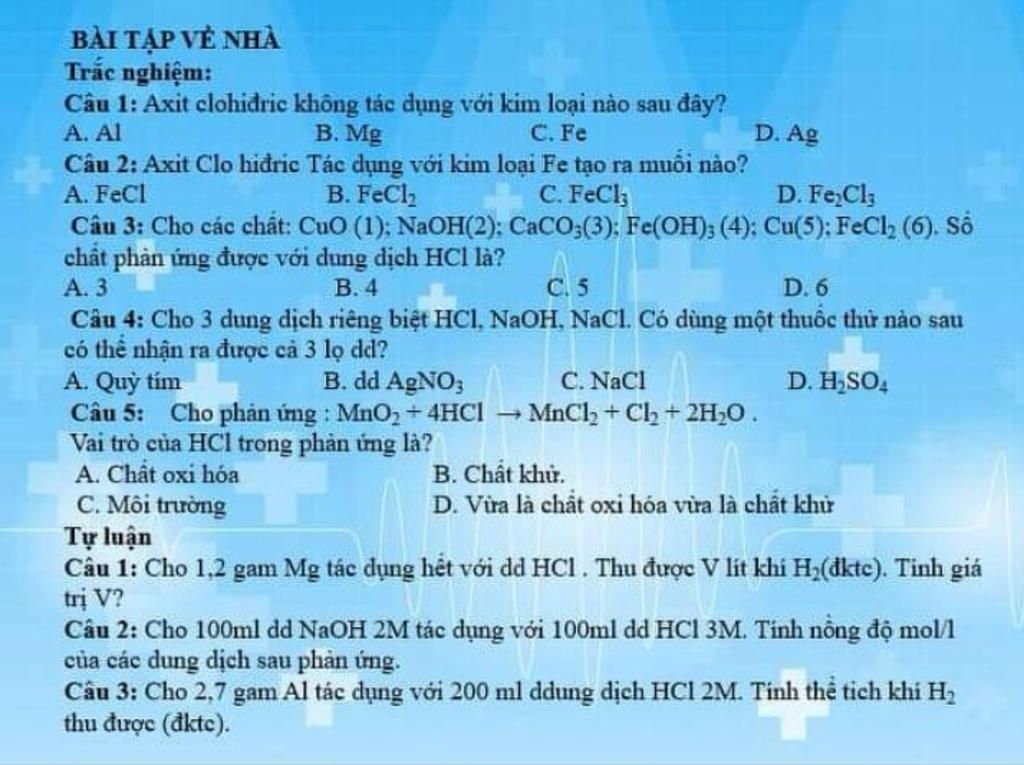 CÂU 2: nNaOH = 0,2 mol ; nHCl = 0,3 mol