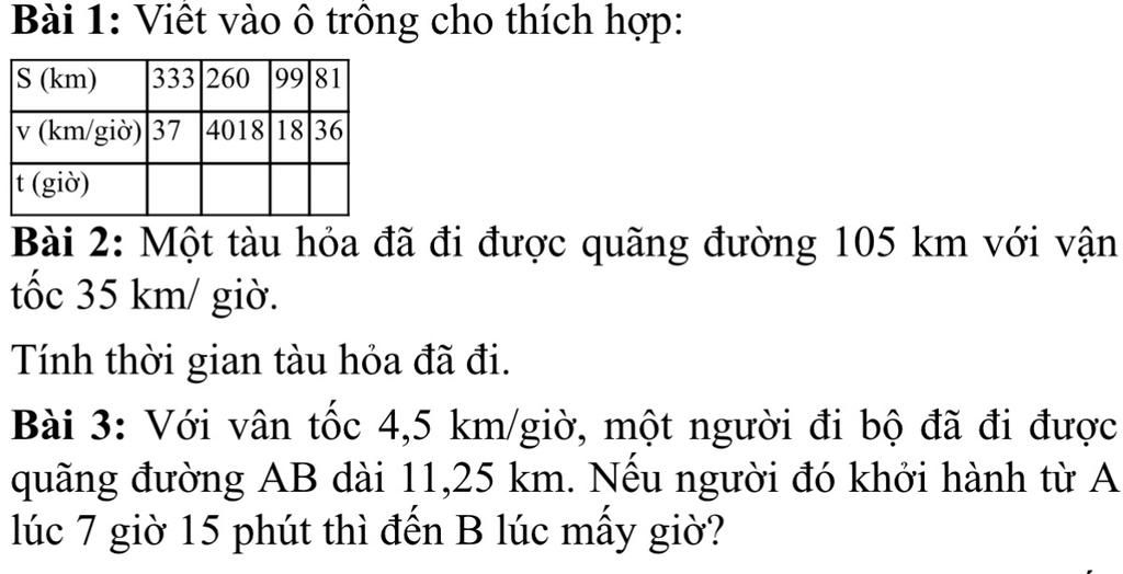 3. Thời gian đi quãng đường AB là: 11,25/4,5 = 2,5