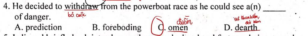 `@` see an omen of danger `=` have a premonition of st : có linh cảm về điều không lành sắp xảy ra (V)