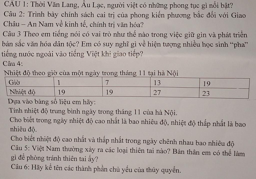 câu 1: tục thờ cúng tổ tiên, tục xăm mình, nhuộm răng đen, ăn trầu, làm bánh chưng, bánh giầy