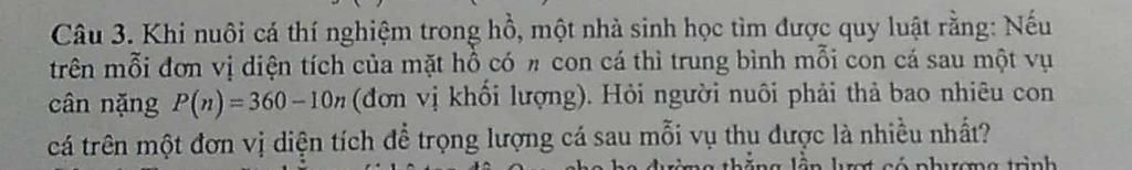`=>` cần thả `18` con cá trên 1 đơn vị diện tích để được trọng lượng cá lớn nhất .