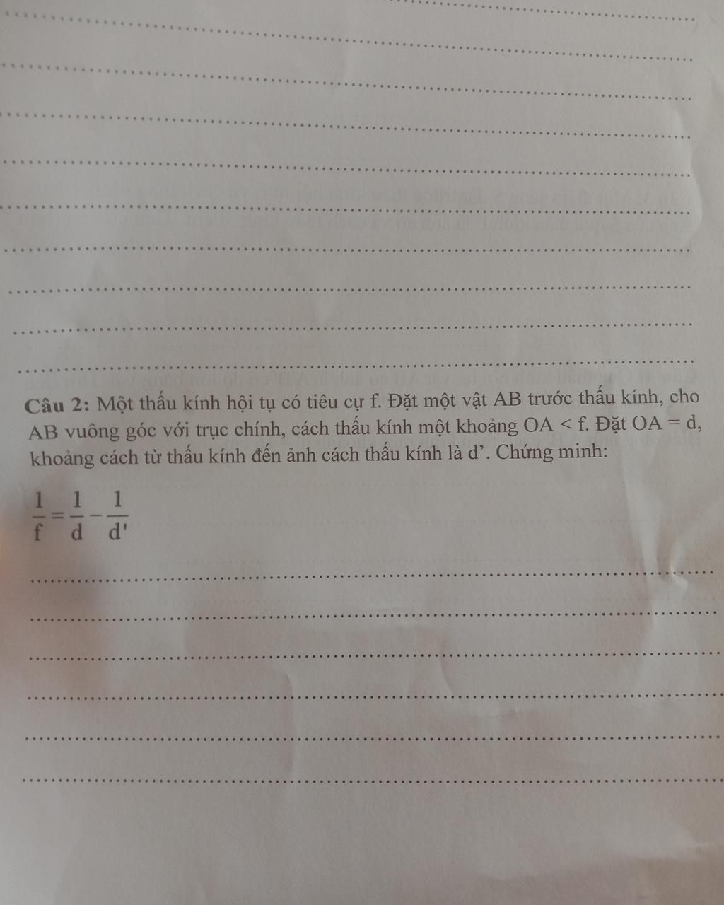 \Rightarrow \dfrac{d}{{d'}} = \dfrac{f}{{d' + f}} \Rightarrow d'f = d.d' + df\\