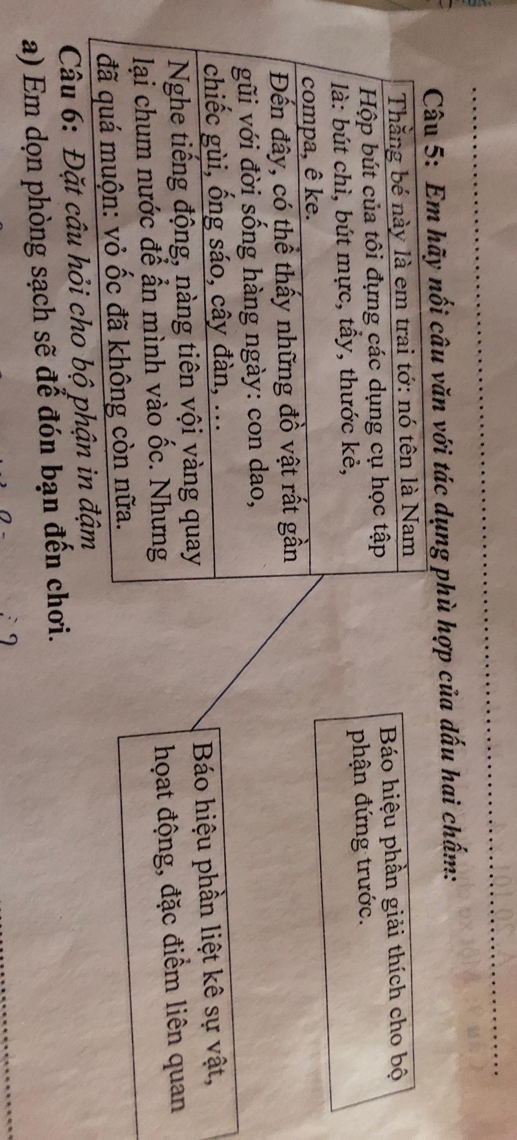 a,Em hãy đặt câu trong đó có bộ phận trả lời câu hỏi để làm gì nêu công dụng của một đồ vật trong nhà