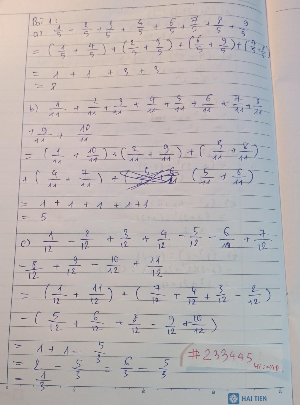 a)1/5+2/5+3/5+4/5+6/5+7/5+8/5+9/5