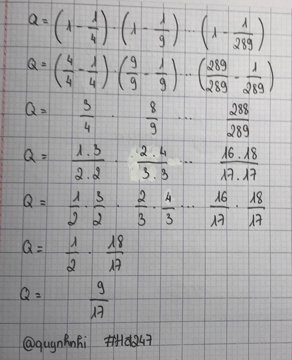 Q = ( 1 - 1/4 ) . ( 1 - 1/9) ....( 1 - 1/289 )
