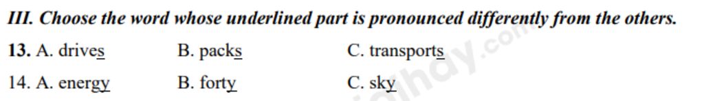 `13.bbA` phát âm /z/, còn lại phát âm /s/