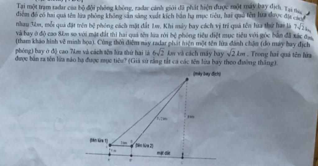 nhau 3km, mỗi quả đặt trên bệ phóng cách mặt đất 1. Khi máy bay cách vị trí qu ...