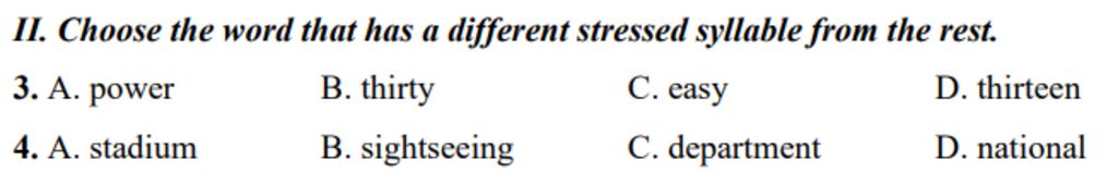 `3.C` nhấn âm `2,` còn lại nhấn âm `1`