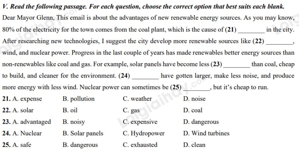 I’m sending this postcard to you from Canada (21) _______ hope it finds you doing well. I’ve been in Canada for almost a year studying science at the University of Toronto. Things are going great for me here. I got a job (22) _______ a teacher assistant researching climate change and its effects on the ecosystem. Last month we went to Lake Superior and took water (23) _______ to test the pollution levels. The weather here is so cold! We took a ferry to cross the water in a snow storm, and the wind (24) _______ so hard it was making the boat rock from side to side. It was an exciting adventure. Next week is the winter holiday. I’m planning on going skiing for the first time. I wish you could be here so we could spend time traveling and taking photos. Canada is such (25) _______ beautiful country. I think you would really enjoy visiting.