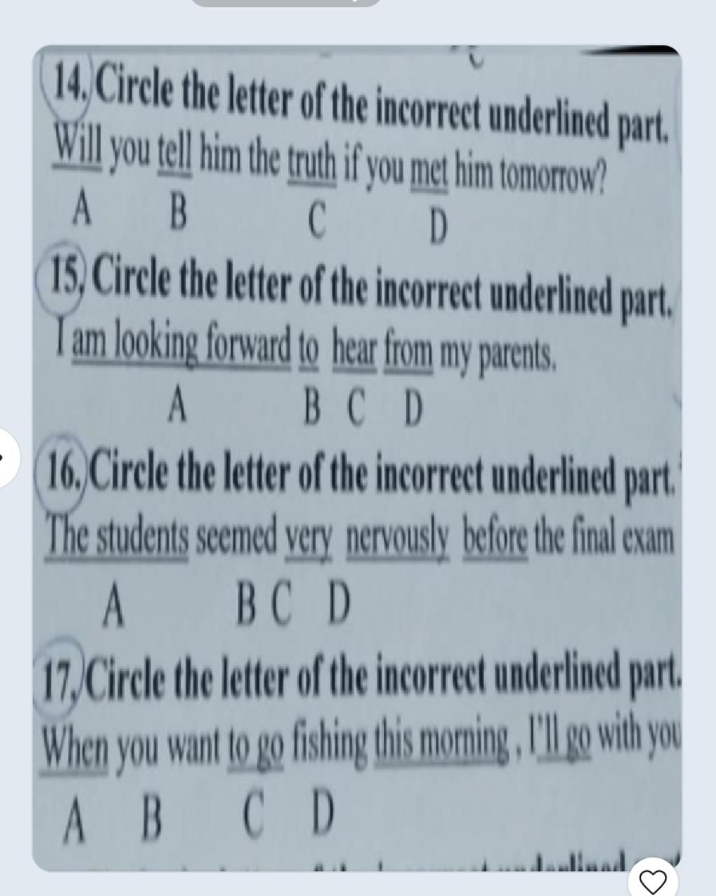 16. C (nervously --> nervous)