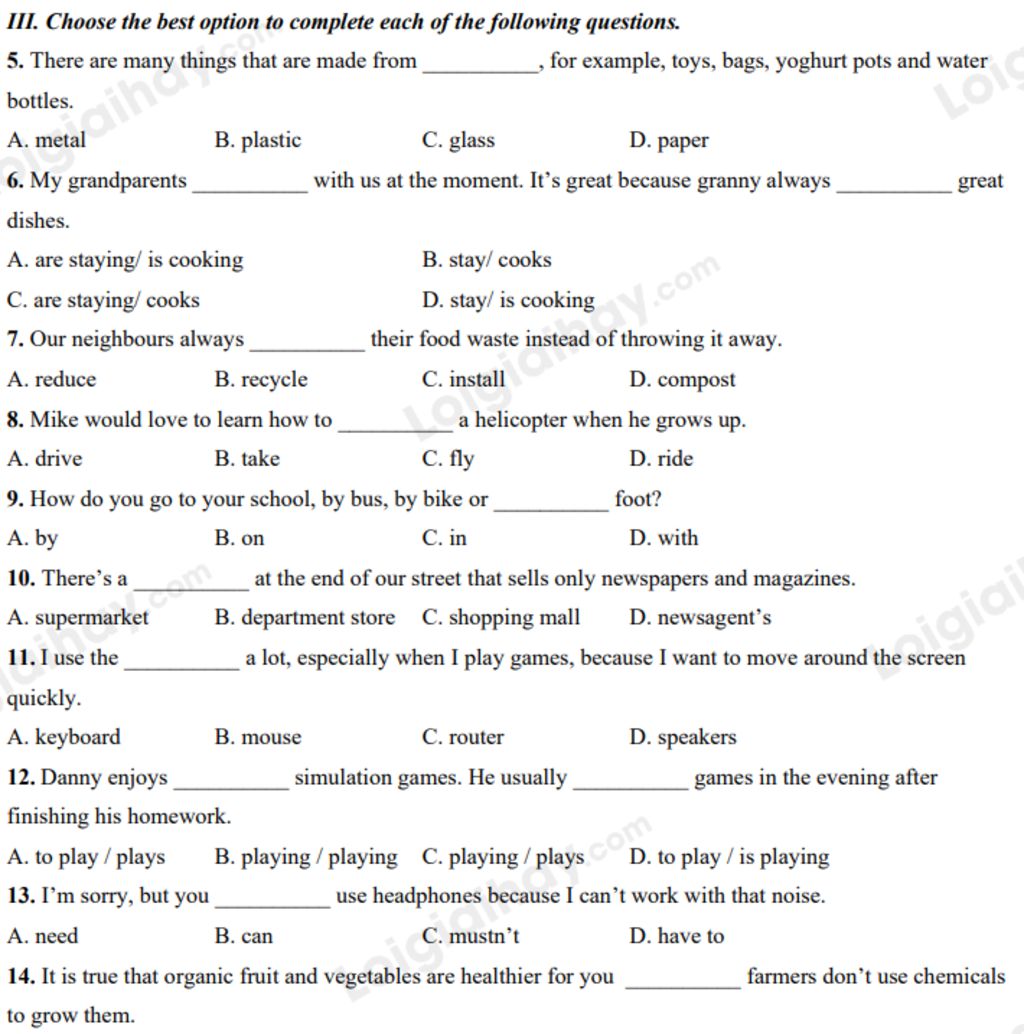 `->` "toys, bags, yoghurt pots and water bottles" - đồ chơi , túi , vỏ sữa chua . chai nước `->` đều là những sản phẩm làm từ nhựa `->` dùng "plastic"