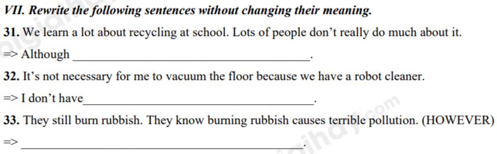 `31.` Although we learn a lot about recycling at school, lots of people don’t really do much about it.