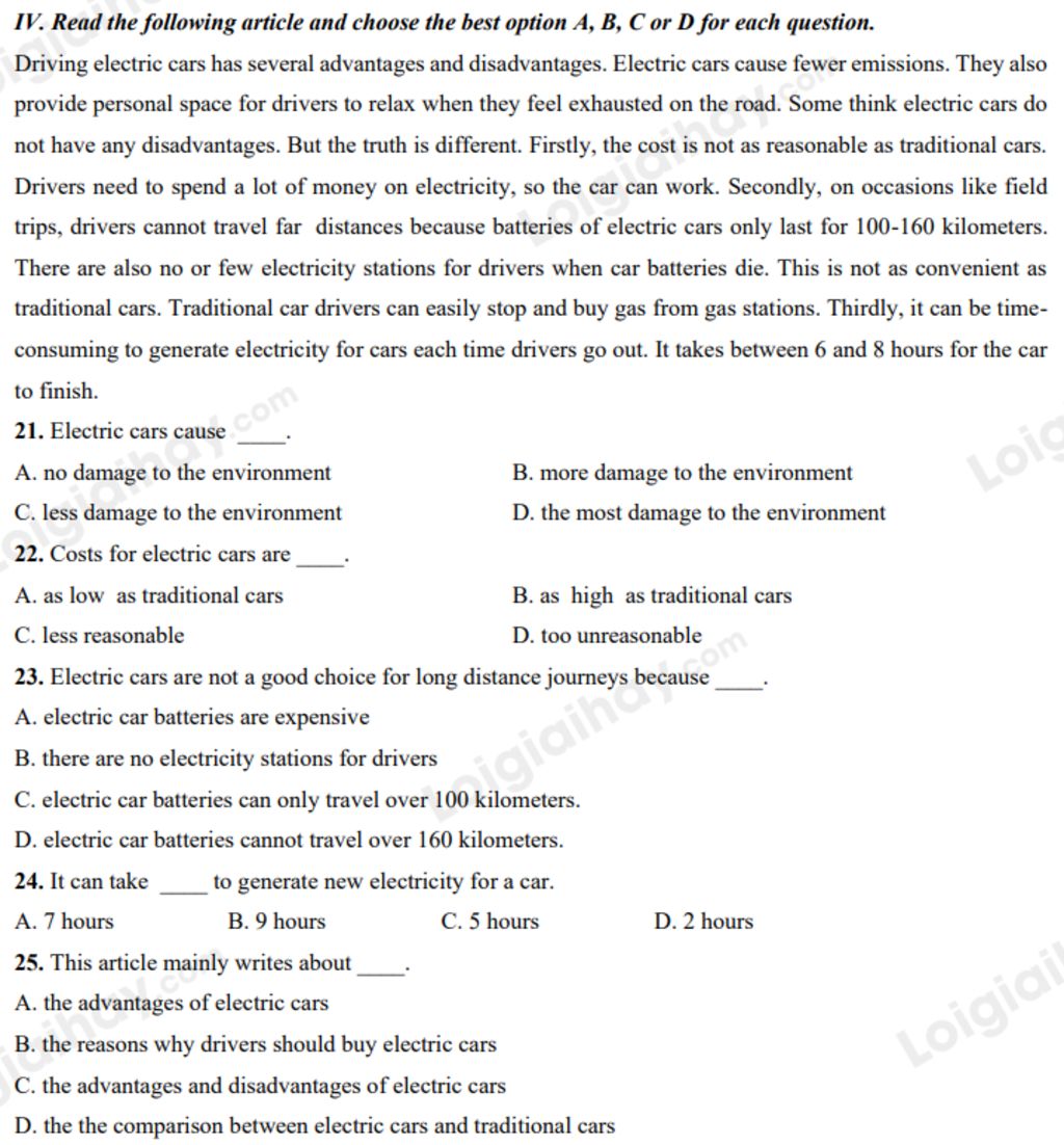 `-` Dẫn chứng `:` Secondly, on occasions like field trips, drivers cannot travel far distances because batteries of electric cars only last for 100-160 kilometers.