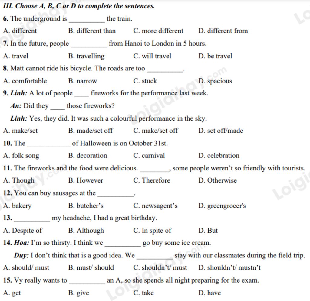 `->` Despite / In spite of `+` N / N phrase / V-ing, MĐề