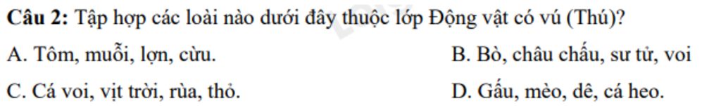 `@`Các loài thuộc lớp Động vật có vú (Thú):