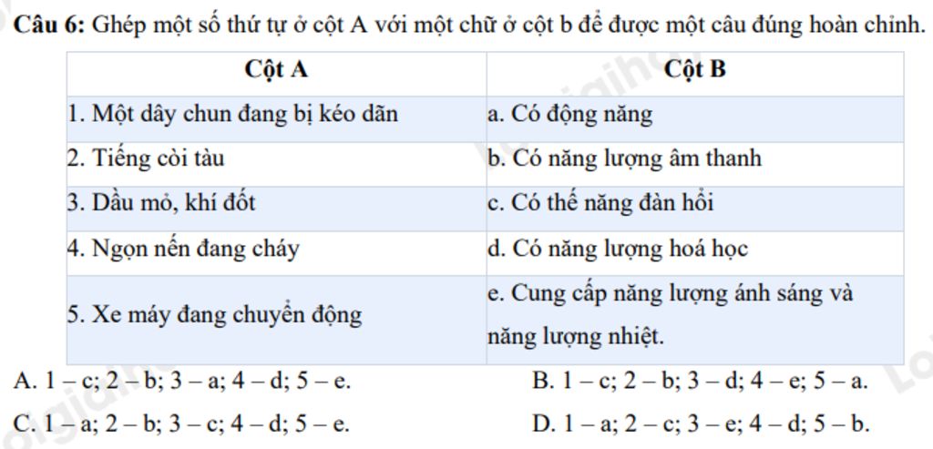 Đáp án câu 6 là: