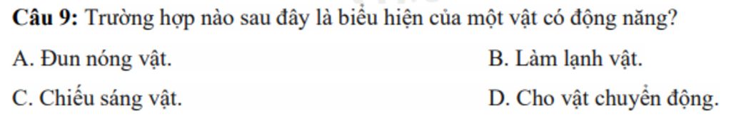 `->` Cho vật chuyển động là biểu hiện của một vật có động năng
