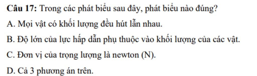=>vậy đáp án là D. Cả 3 phương án trên.