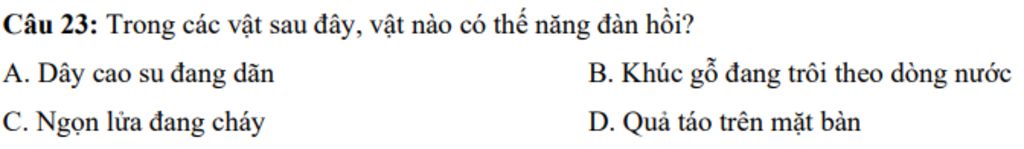 `-` Dây cao su đang dãn là vật có thế năng đàn hồi.