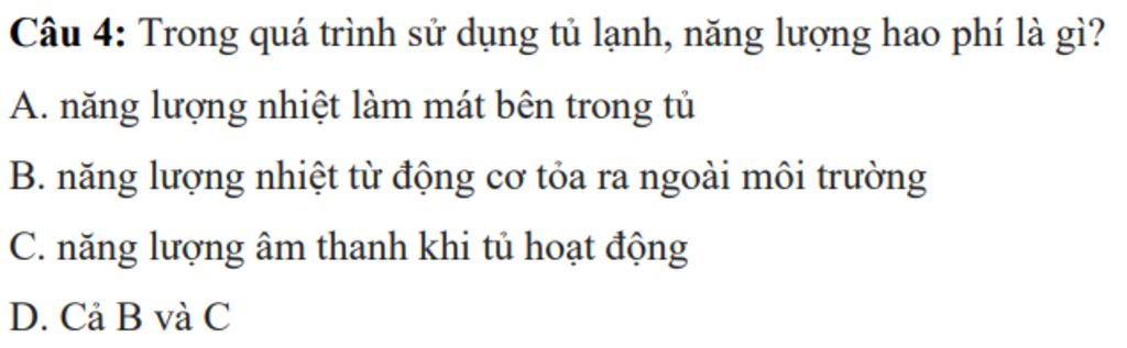 Câu 4: Trong quá trình sử dụng tủ lạnh, năng lượng hao phí là gì?