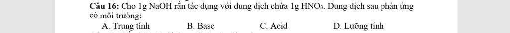 `->` Dd sau chứa NaOH, `NaNO_3` có môi trường base