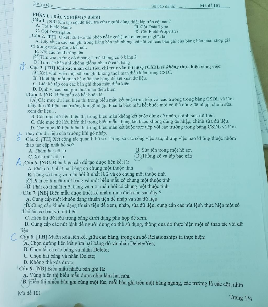 Câu 2. [TH]. Ở kết nối 1-0 thì phép nối ngoài(Left outer jon) nghĩ ...