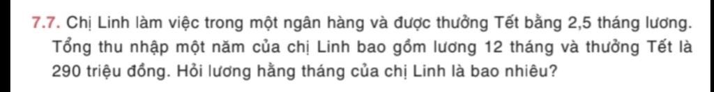 Theo đề bài : Thưởng tết của chị bằng 2,5 tháng lương.