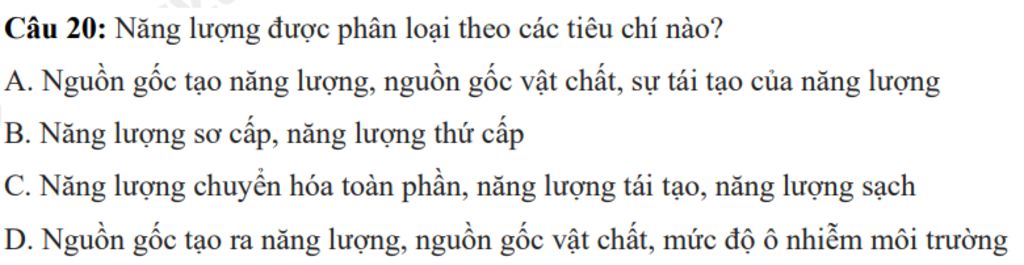 `-` Bởi năng lượng được phân loại theo các tiêu chí: