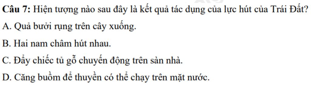 => vì Quả bưởi rụng trên cây xuống là kết quả tác dụng của lực hút của Trái Đất