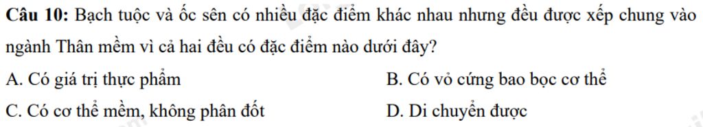 =>vậy đáp án là C. Có cơ thể mềm, không phân đốt