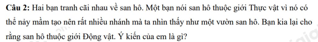 San hô là động vật thuộc ngành ruột khoang, có khả năng dị dưỡng. Vì tuy có khả năng nảy mầm sinh trưởng nhưng chúng không phải là thực vật.